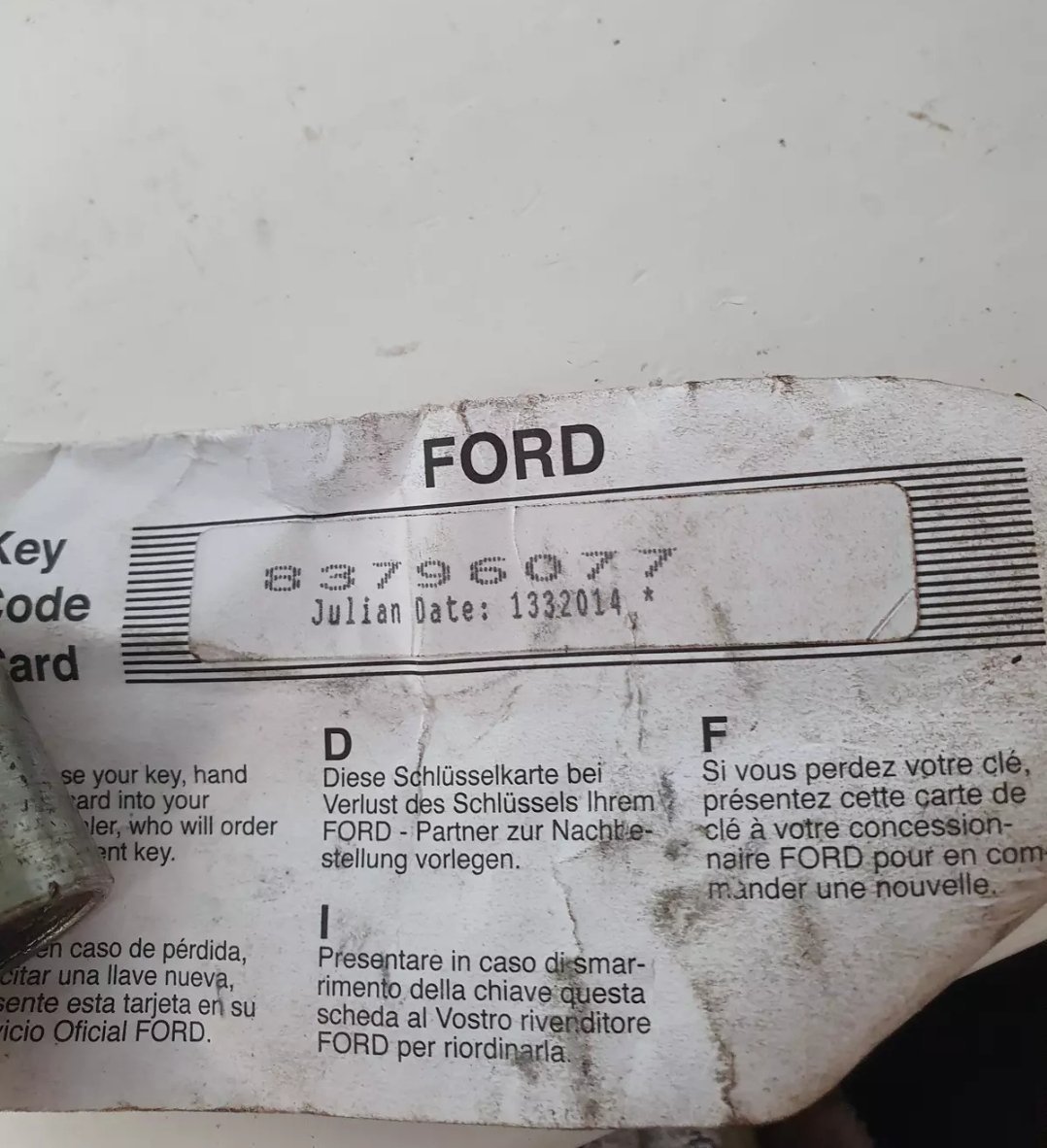 Ford Mondeo/ Locking Wheel nut key code : 83796077
